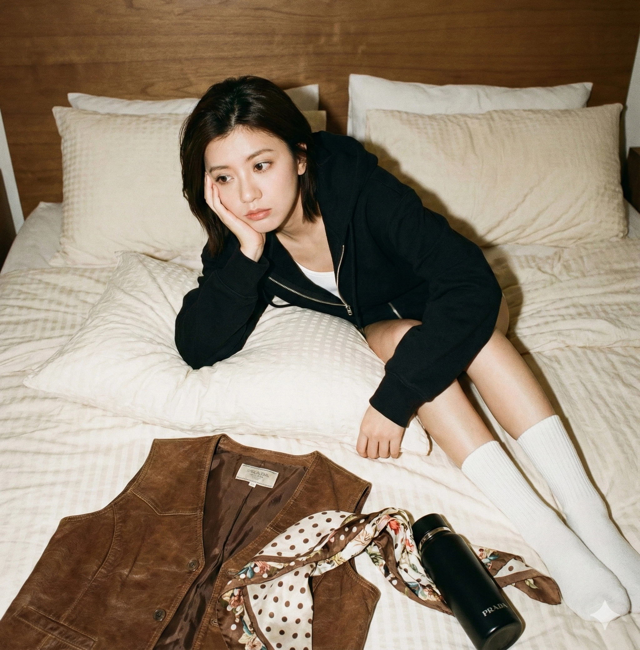 - 清冷感 (Cool/Detached): 表情管理配合妆容,带有一种疏离但高级的美感。